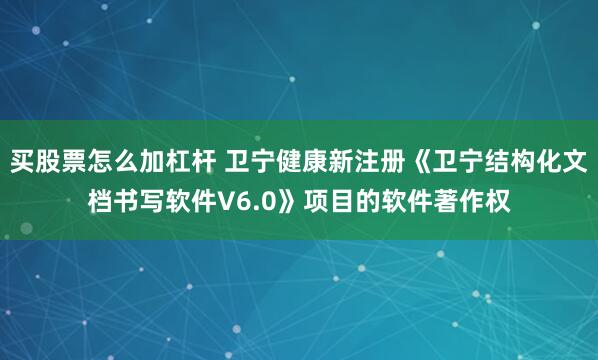 买股票怎么加杠杆 卫宁健康新注册《卫宁结构化文档书写软件V6.0》项目的软件著作权